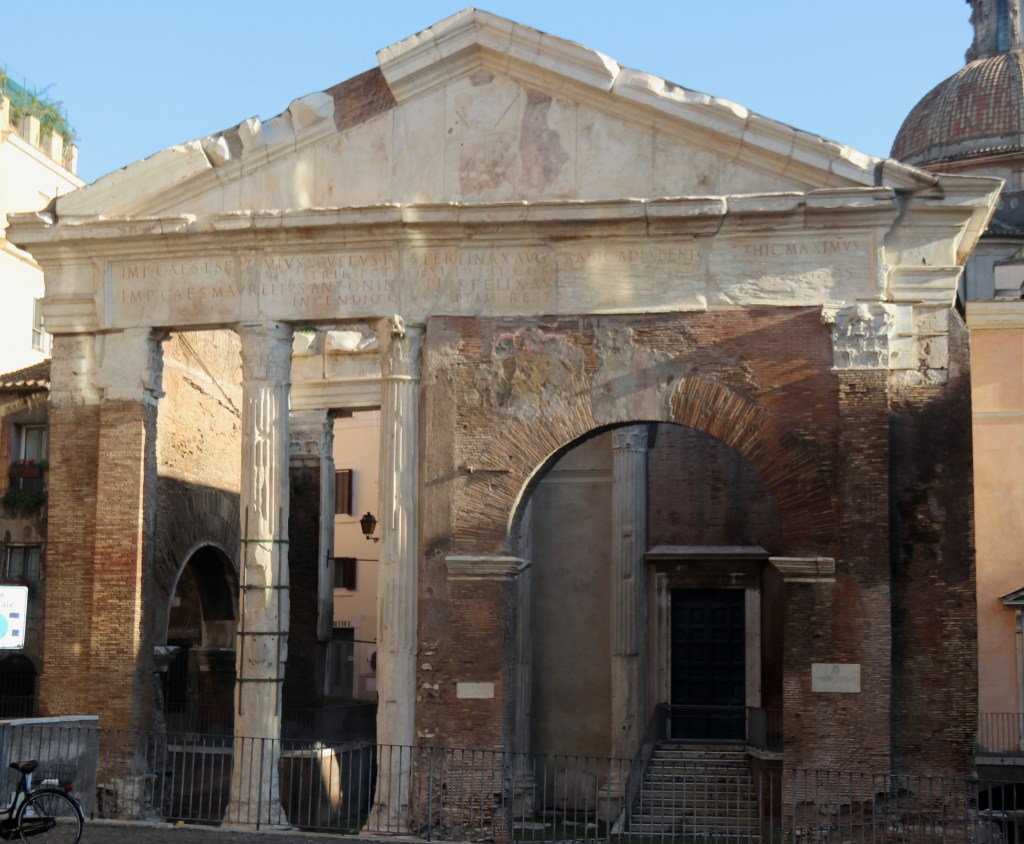 Arch of Portico d’Ottavia with Church of Sant’Angelo in Pescheria behind